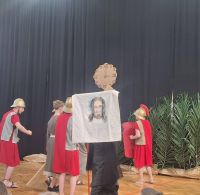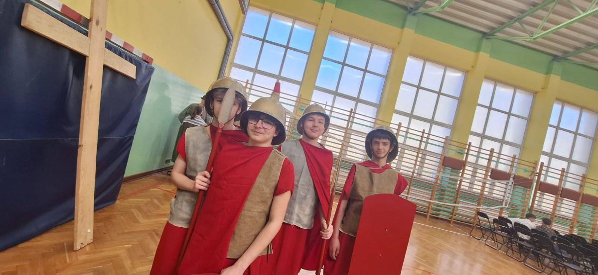 Dnia 14 kwietnia 2025 roku w naszej szkole odbył się Apel Wielkanocny, w którym występowali uczniowie klas 6 - 8 i oddział przedszkolny, pod kierunkiem p. Elżbiety Olborskiej i p. Anety Piaseckiej. Występ w wykonaniu przedszkolaków był bardzo wesoły, urozmaicony piosenkami i wierszykami. Starsi uczniowie podczas smutnego, ale przepięknego przedstawienia ukazali cierpienie Jezusa na krzyżu. Wiele osób uroniło łzę podczas tego występu.